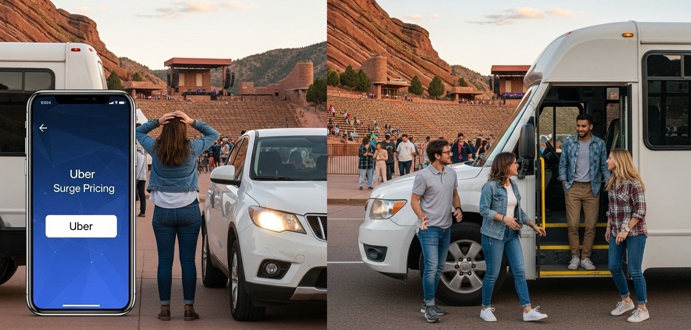 Two of the most common options are shuttles and Uber rideshares. But which one makes more sense for your wallet, time, and comfort? In this cost-benefit analysis, we’ll compare Shuttle vs Uber for your Red Rocks round trip — and show why many concert-goers ultimately choose a professional limo or car service for the best balance of convenience and value.